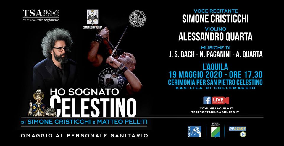 “Ho sognato Celestino” è il titolo del testo che il direttore del Tsa, Simone Cristicchi – che ne ha curato la scrittura insieme a Matteo Pelliti – interpeterà accompagnato dalle note del violinista Alessandro Quarta.