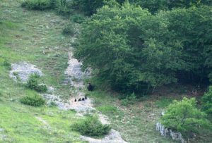 PESCASSEROLI – Non credevano ai loro occhi i due Guardaparco che hanno scattato questa foto due giorni fa, durante lo svolgimento del proprio turno di servizio, ed è stato talmente grande lo stupore che a distanza di ore hanno faticato a raccontarlo. Lo stesso effetto, stupore, ammirazione e tantissima gioia hanno pervaso tutti gli operatori addetti al monitoraggio dell’orso bruno e più in generale tutti coloro che hanno avuto modo di ammirare questa foto, che racconta di un evento eccezionale e non solo per l’orso marsicano, visto che anche nel resto d’Europa eventi simili sono piuttosto rari.