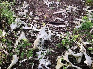 Sempre nell’ambito dei controlli territoriali finalizzati al rispetto delle norme a tutela del territorio e del bestiame domestico, nei giorni scorsi, nell’ambito di un’operazione finalizzata alla verifica della presenza di esche e bocconi avvelenati in comune di Montenero Valcocchiara (IS), nell’area contigua del versante molisano del Parco, è stato rinvenuto un altro deposito abusivo di carcasse di domestici morti. In particolare Guardiaparco e Carabinieri Forestali del Nucleo Cinofilo Antiveleno di Frosolone hanno riscontrato i resti di almeno 7 bovini adulti e 1 equino, tutti vecchi di qualche settimana. Anche questa volta l’area interessata è quella del pantano Zittola, non molto distante dal sito dove non più tardi di qualche settimana fa era stata accertata una situazione analoga, a conferma, purtroppo, del fatto che l’episodio denunciato non era un caso isolato.