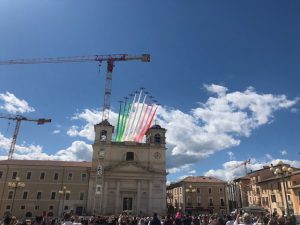 L’AQUILA – Come da programma, in occasione delle celebrazioni per il 74° anniversario della proclamazione della Repubblica, la città dell’Aquila, come capoluogo della regione Abruzzo, è stata interessata nel pomeriggio di oggi dal sorvolo della Pattuglia Acrobatica Nazionale che in questi giorni sta toccando tutte le regioni italiane abbracciando simbolicamente con i fumi tricolori tutta la Nazione, in segno di unità, solidarietà e ripresa.