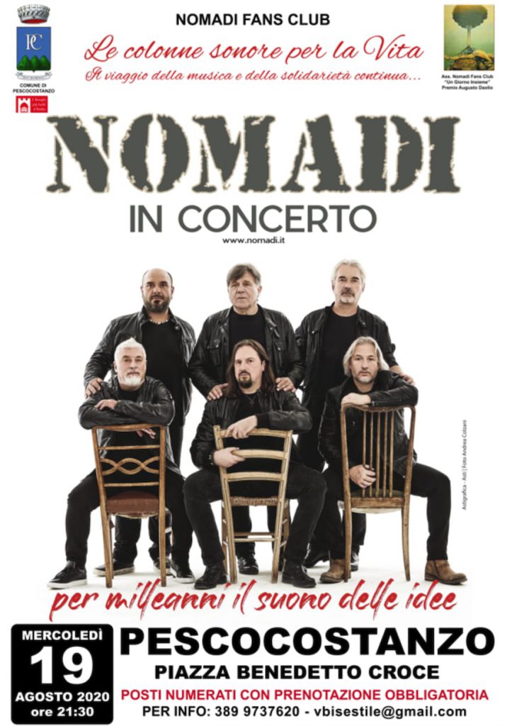 PESCOCOSTANZO – I Nomadi, la band più longeva della musica italiana, torna a esibirsi in Abruzzo, per un concerto in esclusiva a Pescocostanzo. Il concerto si terrà mercoledì 19 agosto, alle ore 21, in Piazza Benedetto Croce (posti numerati con prenotazione obbligatoria).