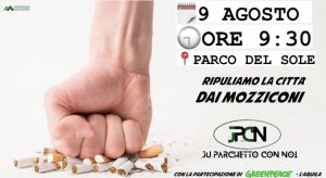 L’AQUILA – L’associazione “Ju Parchetto con Noi” e Greenpeace-Gruppo Locale L’Aquila organizzano per domenica 9 agosto una raccolta mozziconi di sigaretta al Parco del Sole.