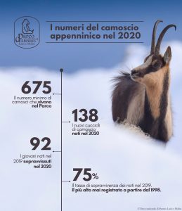 I dati raccolti e analizzati nel 2020 non si discostano molto da quelli degli anni precedenti e ci descrivono nel complesso una popolazione stabile e in equilibrio, con parametri vitali tipici di una popolazione storica. Ma, in alcuni settori del Parco, però sono stati registrati anche parametri di popolazione particolarmente dinamici. Nel settore del massiccio del Marsicano negli ultimi anni è stata registrata una crescita esponenziale dei branchi, con tassi riproduttivi molto più elevati rispetto al resto della popolazione. Proprio con l’obiettivo di meglio comprendere queste dinamiche, il Parco negli ultimi anni ha raddoppiato le giornate dedicate ai conteggi in modo da estendere il monitoraggio anche nelle aree di recente colonizzazione del camoscio. La ricolonizzazione e la rapida crescita osservata sul monte Marsicano, la stabilità della popolazione nei settori storici dell’areale, la disponibilità di habitat idonei, nel Parco e nella sua area contigua, mostrano l’importanza delle azioni di conservazione intraprese in questi anni.