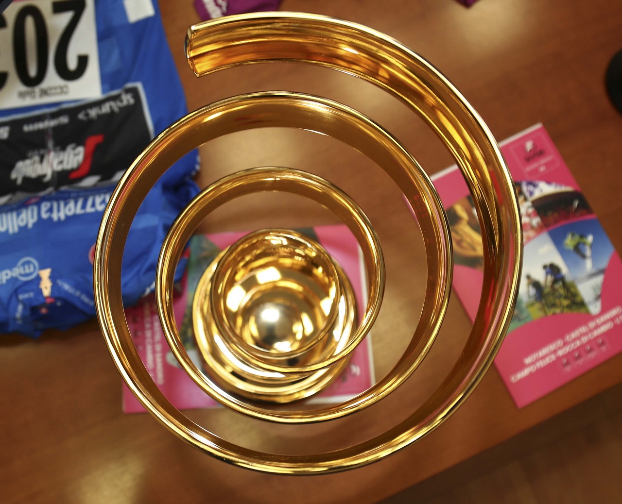 L’AQUILA – Il Trofeo Senza Fine ha viaggiato nel week end nelle Città di Tappa in Abruzzo del prossimo Giro d’Italia, tingendole di rosa e oro. Il prezioso simbolo, arrivato in versione originale (edizione 2021) e in esclusiva in Abruzzo, ha idealmente unito tutte le città e i loro comitati (tre nella provincia dell’Aquila e uno in quella di Teramo). Per l’occasione infatti RCS ha realizzato un logo ad hoc “Giro d’Italia Regione Abruzzo” per significare il legame territoriale tra i comitati tappa. Un messaggio di unità e rete territoriale sposato dall’assessore allo Sport della Regione Abruzzo, Guido Quintino Liris, allo scopo di promuovere in maniera unitaria il territorio e sfruttare l’occasione della grande visibilità internazionale che porta il Giro d’Italia.