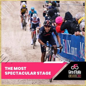 L’AQUILA – “Il premio di tappa più spettacolare va alla 9^ frazione, la Castel di Sangro – Campo Felice Rocca di Cambio. Forse perché gli ultimi 3 km di salita finale erano in sterrato, e quando compare la ghiaia arriva sempre, inevitabilmente, anche lo spettacolo. Forse perché eravamo ancora nella prima parte del giro e ogni possibilità era ancora aperta e percorribile, fresca e basta come la nostra curiosità. Forse perché è stato il giorno in cui Egan Bernal ha indossato la Maglia Rosa, senza poi lasciarla più”.