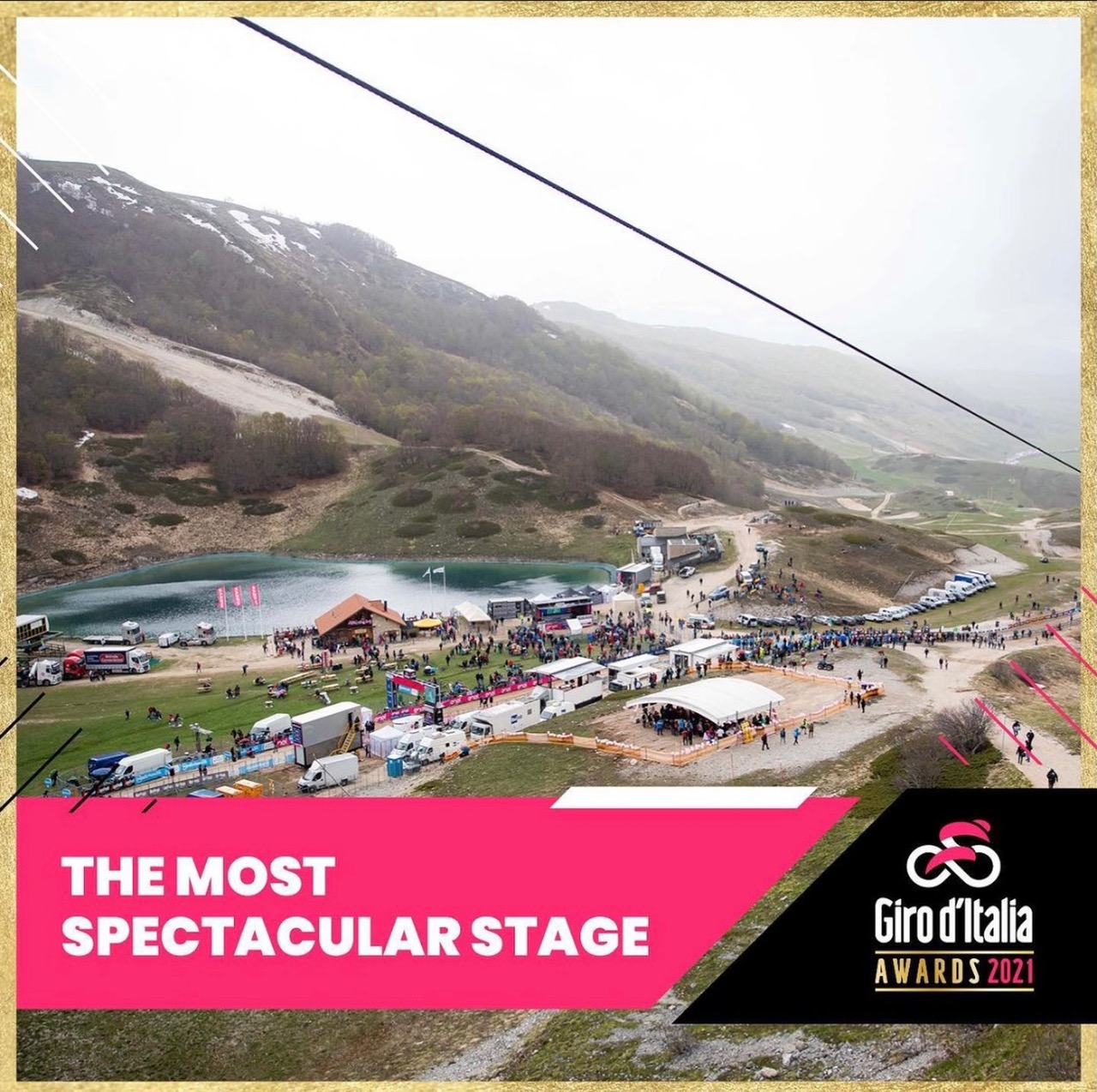 È questa la motivazione con cui RCS ha sancito la vittoria al concorso Giro di’Italia Awards della Tappa Castel di Sangro – Campo Felice, come la più spettacolare del Giro 2021.