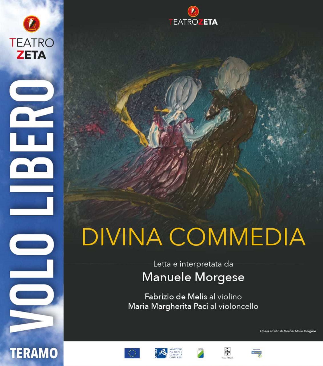 Venerdì 11 febbraio alle ore 21,00, presso lo Spazio Teatrale Backstage Dance Academy di Teramo e sabato 12 febbraio, alle ore 21,00, a L’Aquila presso il Cinema Teatro Zeta in località Monticchio, Manuele Morgese legge “La divina commedia” di Dante Alighieri con Fabrizio De Melis (violino) e Maria Margherita Paci (violoncello).