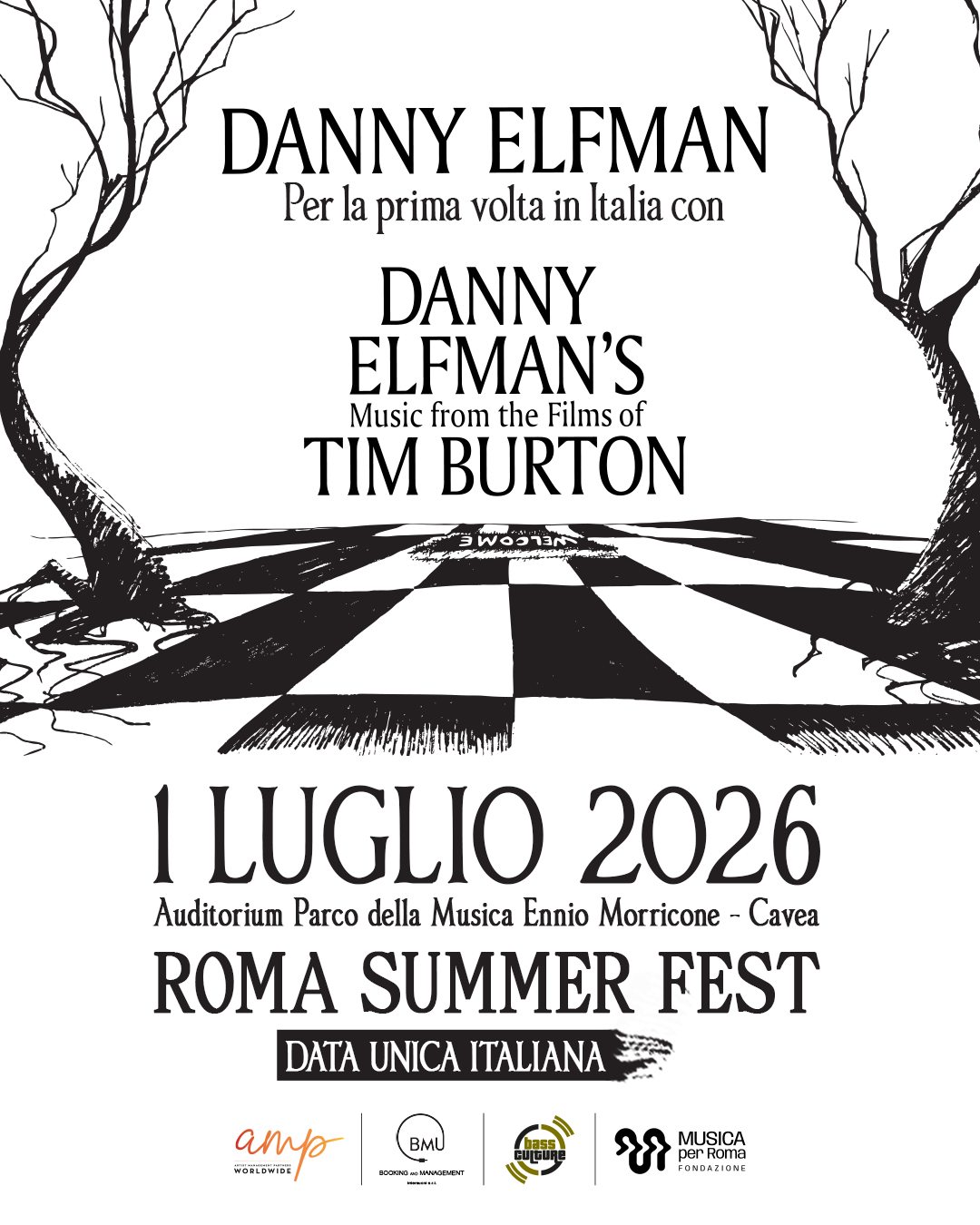 Durante la serata, che si svolge in occasione del Roma Summer Fest 2026, Elfman interpreterà in prima persona alcuni dei momenti cinematografici più amati, amplificando l’atmosfera e il coinvolgimento del pubblico.